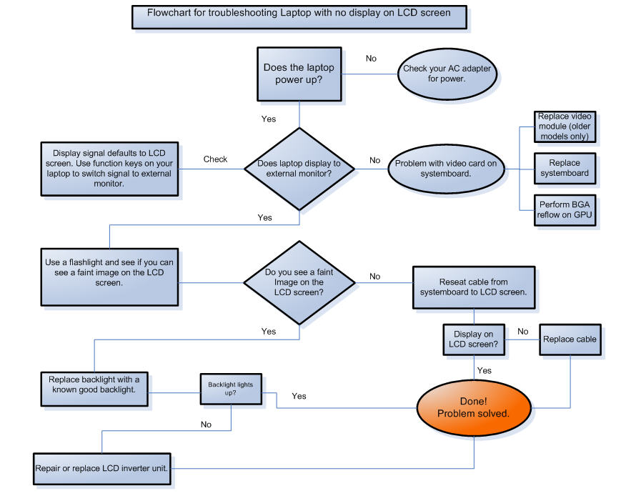 - Flowchart on how to test and see if the LCD screen is at fault.